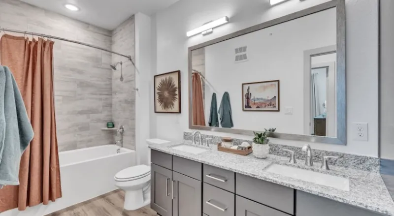 The apartment homes at Pyland Ranch at La Cima are thoughtfully designed to make every day feel extraordinary. Offering one-, two-, and three-bedroom floor plans, each home captures the essence of refined Hill Country living. Interiors feature 9-foot ceilings, granite countertops, stainless steel appliances, and wide-plank hardwood-style flooring that elevates every space. Many homes include walk-in glass showers, dual vanities, and soaking tubs—making it easy to unwind after a long day. For those who love natural light, the oversized windows and private balconies bring the outdoors in, while select units offer fenced yards and mudroom-style entries for added convenience.