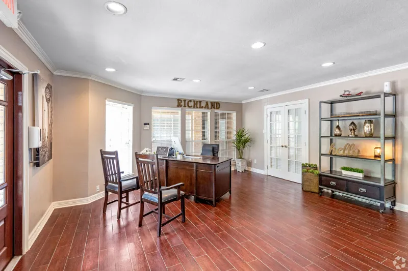 Welcome to The Richland Apartments, a stylish and well-located community on San Antonio’s Northwest Side, situated near Woodchase in the Alamo Farmsteads-Babcock Road area. These homes include features like built-in bookshelves, walk-in closets, wood or tile style flooring, patios or balconies, fireplaces or dry bars in select units, and full-size washer/dryer hookups in most floor plans. The grounds are attractive, with ample oak trees, a sparkling pool, fitness center, lighted tennis court, business center, outdoor BBQ and picnic areas. While the setting feels residential and peaceful, you’re not far from main roads, making access to shopping, restaurants, medical services, and other amenities relatively quick. The community offers a balance of comfort, style, and accessibility that makes daily life easier. If you want a home that feels upscale, with features and convenience close by, The Richland delivers.