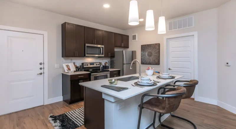 Welcome to TruNorth at Bulverde, a modern luxury apartment and townhome community in the North 78259 area that offers both upscale finishes and lifestyle amenities. You’ll find 1- to 3-bedroom units with chef-inspired kitchens, deep sinks, wood-vinyl flooring, in-unit washer/dryer, and private patios or yards for select homes. Community amenities include a resort-style pool with a sundeck, poolside cabanas, a clubhouse, business/library center, 24-hour fitness center, outdoor fitness areas, demo kitchen, picnic and barbecue spots, and pet-friendly features. Although you’re nestled in a more suburban setting, the location gives you good access to major roads, everyday shopping, and dining without being too far from city conveniences. TruNorth at Bulverde aims to give you a blend of comfort, style, and ease of living.